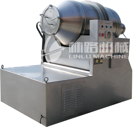 混和筒为圆柱形料筒,筒内不带任何搅拌装置,在绕其对称轴作自转的同时,又绕水平轴作“可倒置”摇摆运动,从而迫使料筒内的物料既有扩散混合又有移动混合。该机具有混和时间短、混和均匀、混合量大等特点。